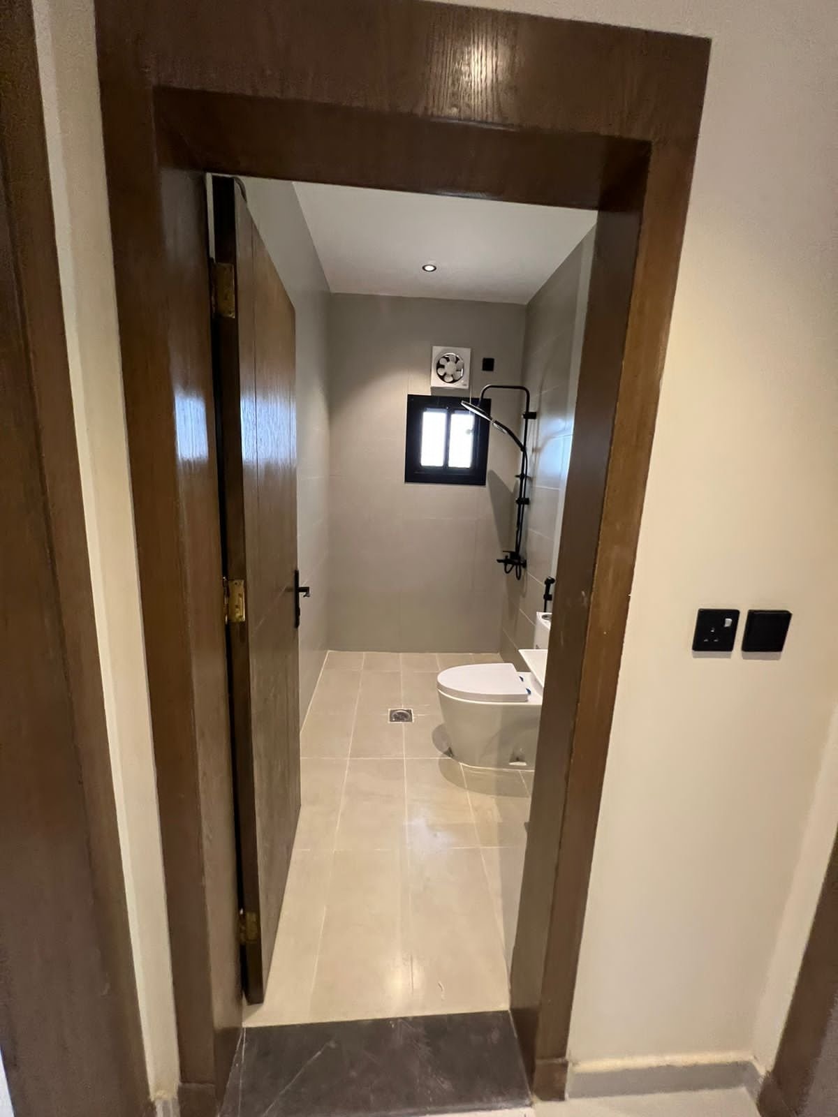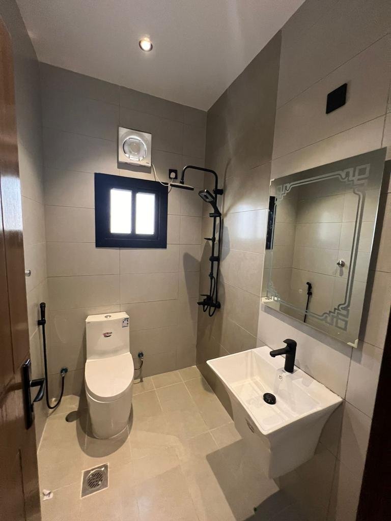 تتميز الواجهة بتصميمها المعماري العصري، تتوزع النوافذ بشكل متناسق عبر الواجهة، وتزينها إضاءة خارجية، مما يضفي جمالية وإضاءة مميزة، مع لمسات من البلاطات والخرسانة الظاهرة التي تعزز من المظهر العصري، الطابق الأرضي مخصص لمواقف السيارات، مع وجود مساحات خضراء ونباتات عند المدخل الرئيسي تضيف لمسة من الطبيعة إلى البيئة الحضرية